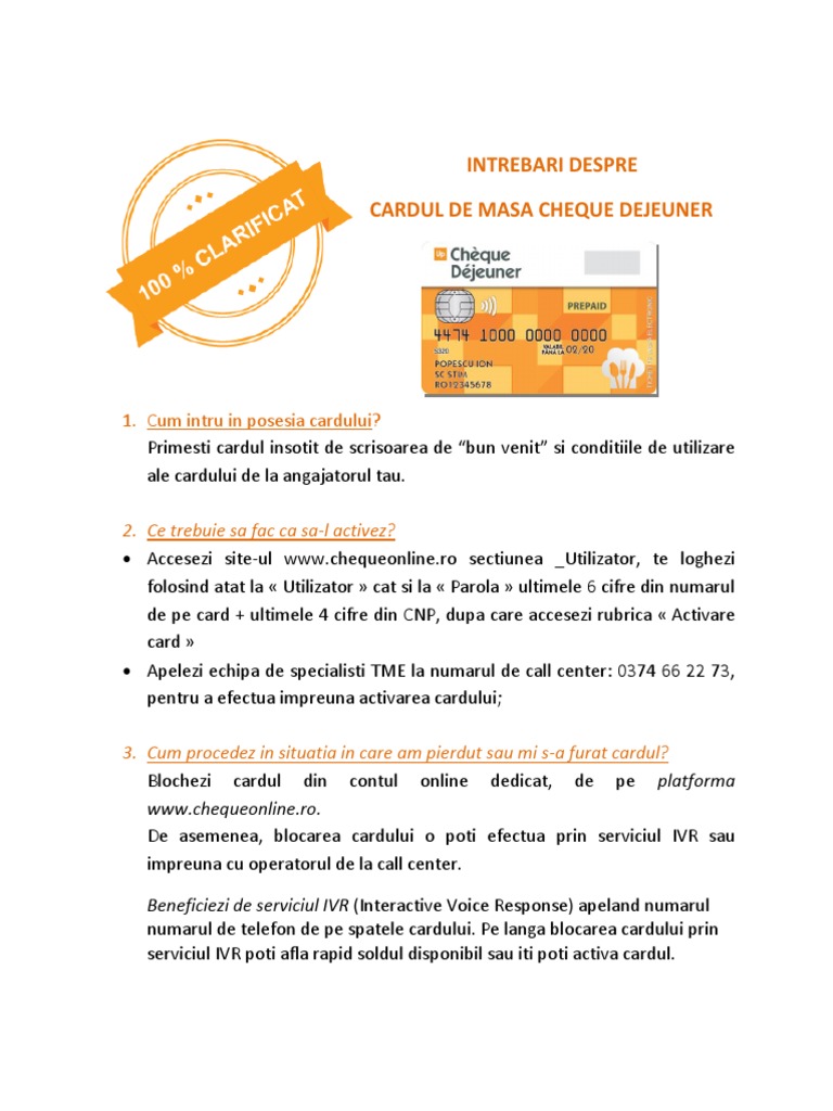 Intrebari Despre Cardul De Masa Cheque Dejeuner