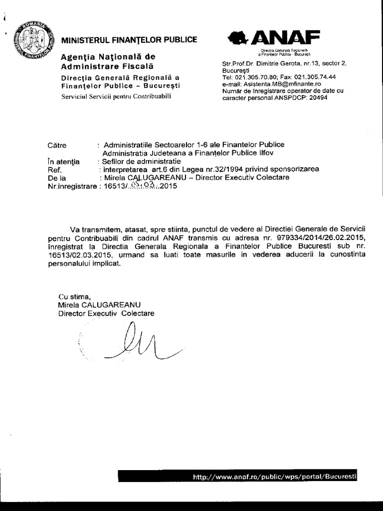 Adresa Către Ministerul Finanțelor Publice Semnată De Asociații
