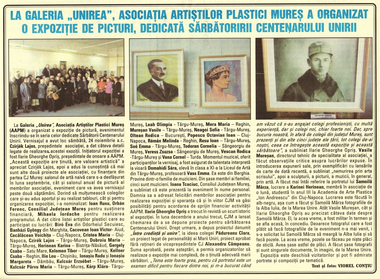 Asociaţia Artistilor Plastici Targu Mures Articol La Galeria Unirea Asociaţia Artistilor Plastici Mures A Organizat O Expoziţie De Picturi Dedicată Sărbătoririi Centenarului Unirii Autor Viorel Conţiu Cuvantul Liber 27 Noiembrie 2018 Targu