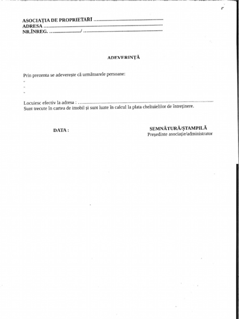Model Adeverinta Asociatie De Proprietari