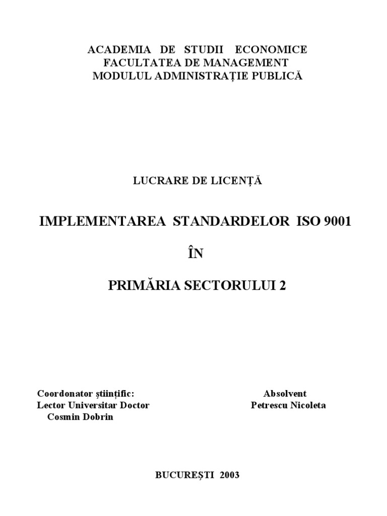 Implementarea Standardelor Iso In Primaria Sector 2