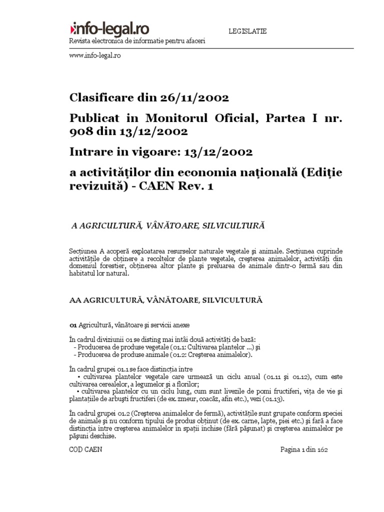 Coduri Caen Actualizate Caen Rev 2 Clasificarea Activitatilor