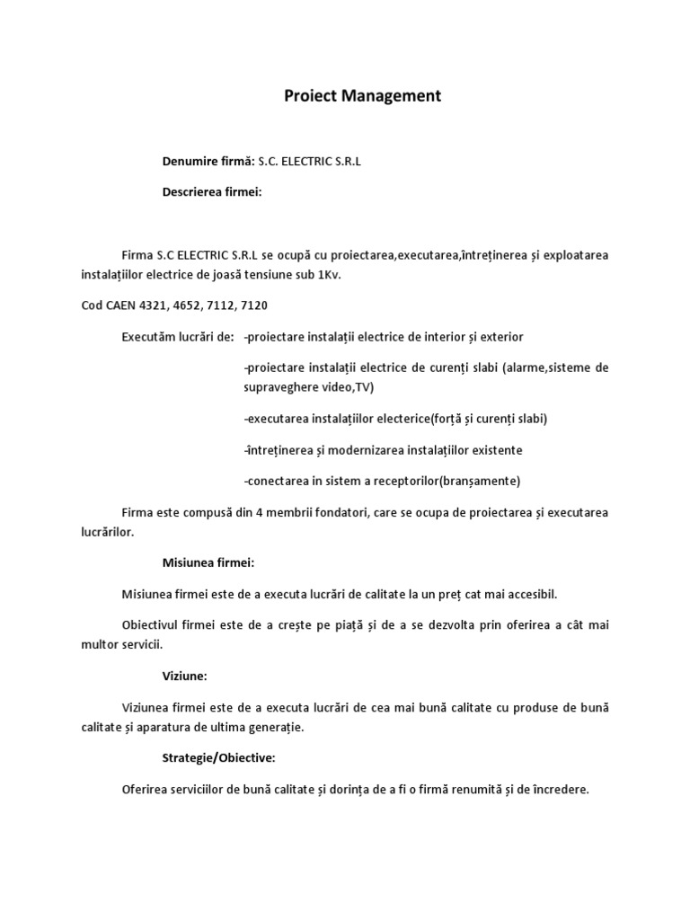 Regulament Intern Pentru Lucrări De Instalaţii Electrice Cod Caen 4321