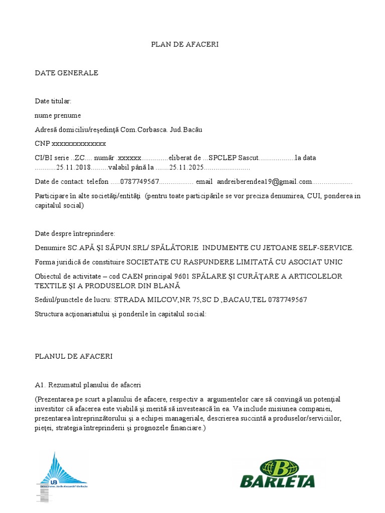 Plan De Afaceri Spalatorie Auto