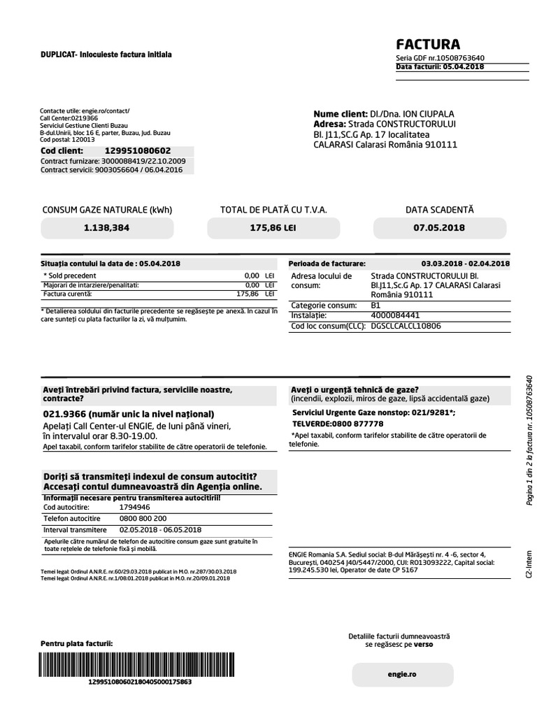 Factura Duplicat Inlocuieste Factura Initiala