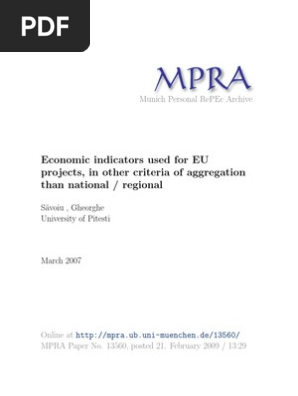 Economic Indicators Used For Eu Projects In Other Criteria Of Aggregation Than National Regional Pdf Free Download