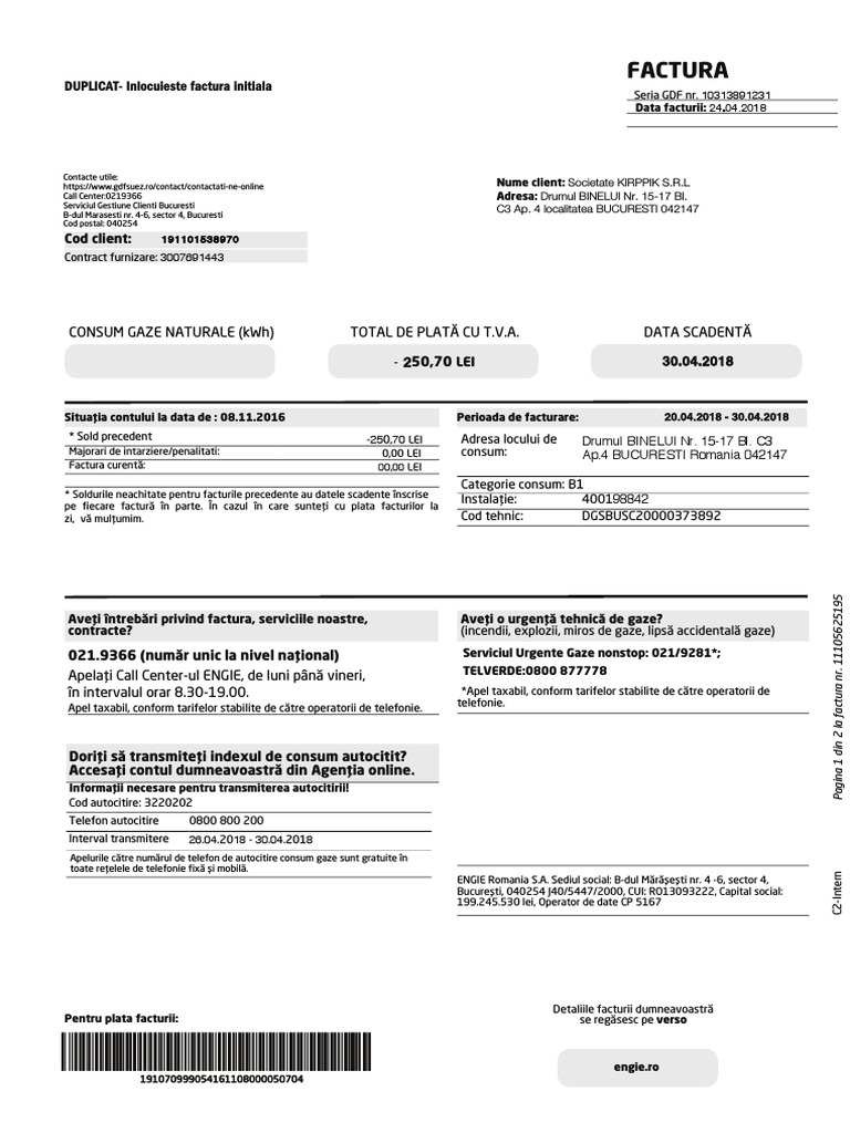 Factura Gaze Pe Minus Acasa