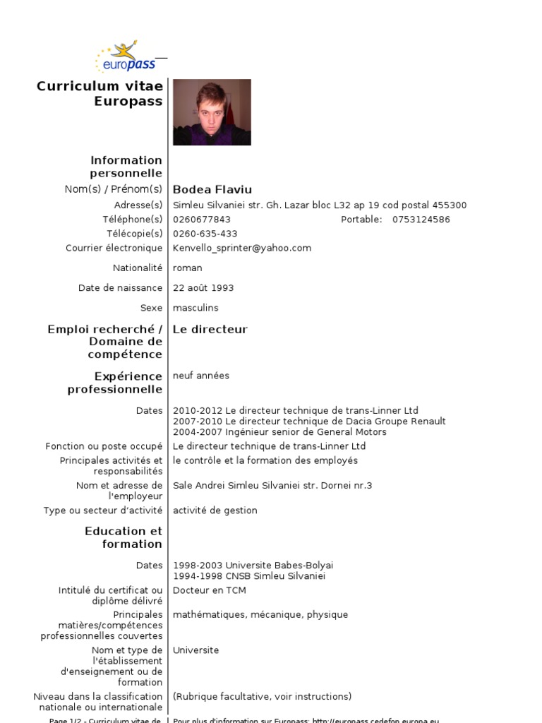 Cv Franceza Informatique Union Europeenne
