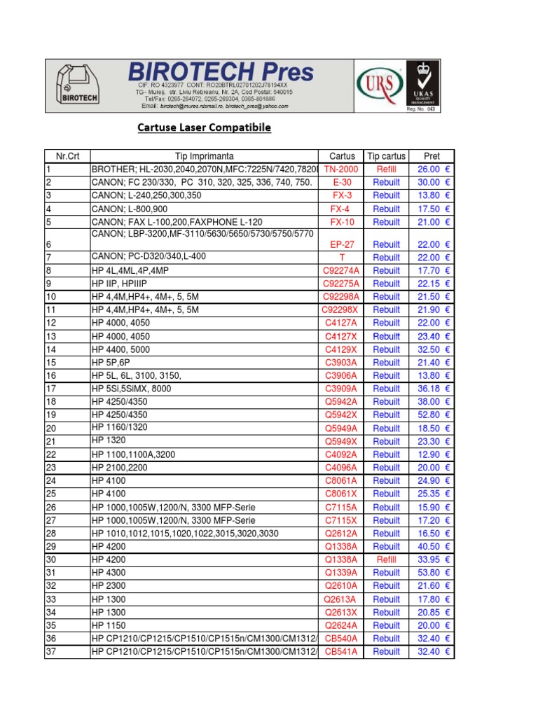Cartuse Toner Foruse Si Piese Pdf Office Equipment Office Work Essai Gratuit De 30 Jours Scribd